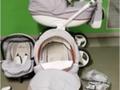 Witam Do sprzedania mam wózek po jednym dziecku Bexa Ideal 3 w 1 w kolorze jasno szarym. W skład