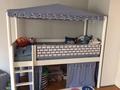 dwupoziomowe, na górze skrzynia łożka, na dole miejsce do zabawy.